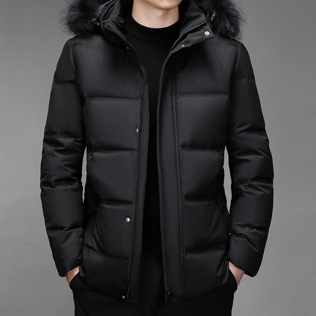 Experience superior winter comfort in this thickened hooded down coat crafted for outstanding insulation and effortless leisure style.