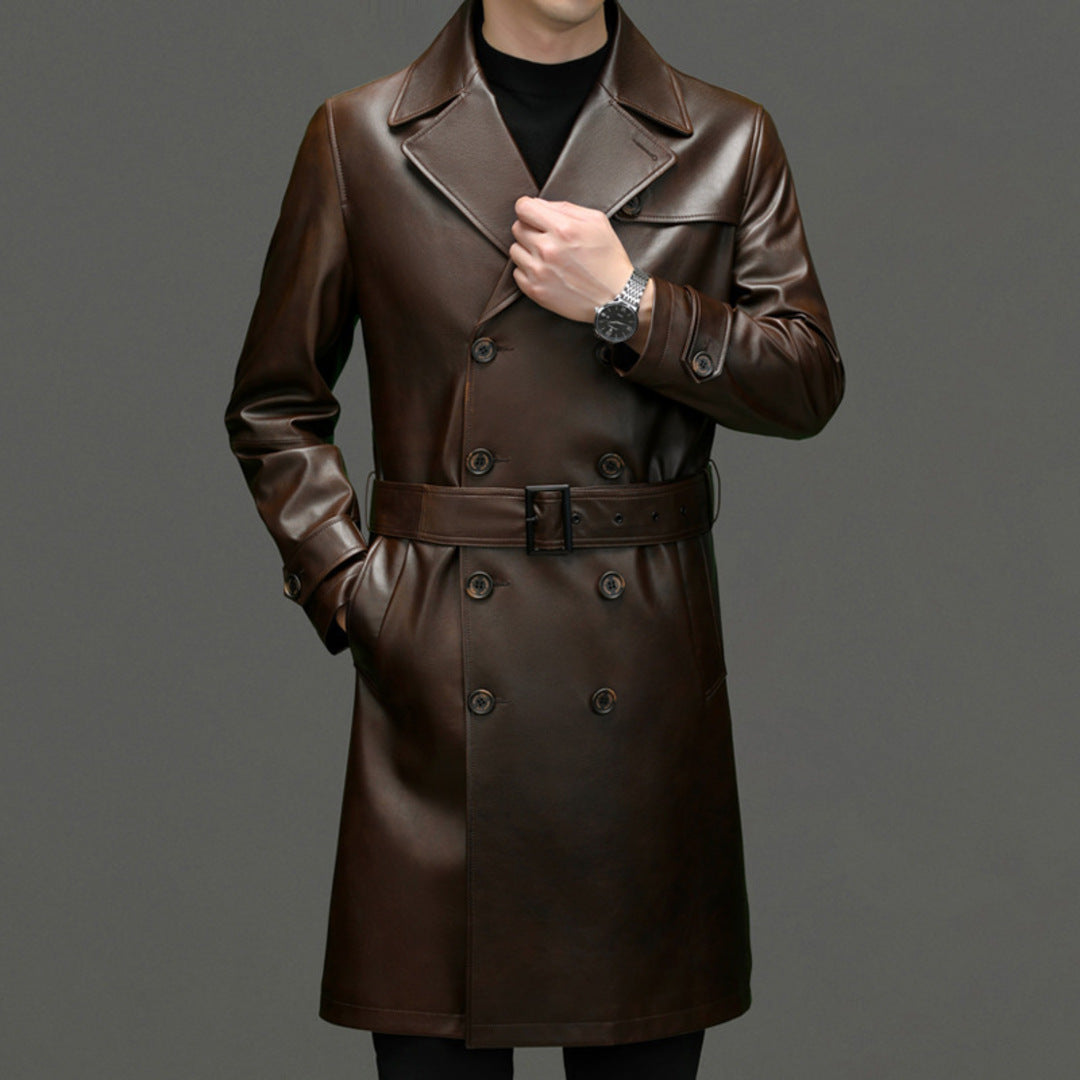 Crafted from premium cowhide, this sharply contoured trench blends enduring craftsmanship with urban sophistication for a powerful cold-season statement.